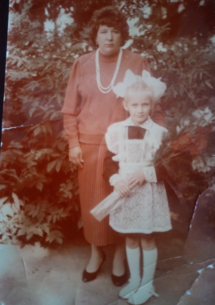 Вот это моя мама отправляет меня в первый класс. И теперь остаётся лишь смотреть старые фотографии, хотя мама всегда останется жить в моём сердце, а по ночам она до сих пор рядом.