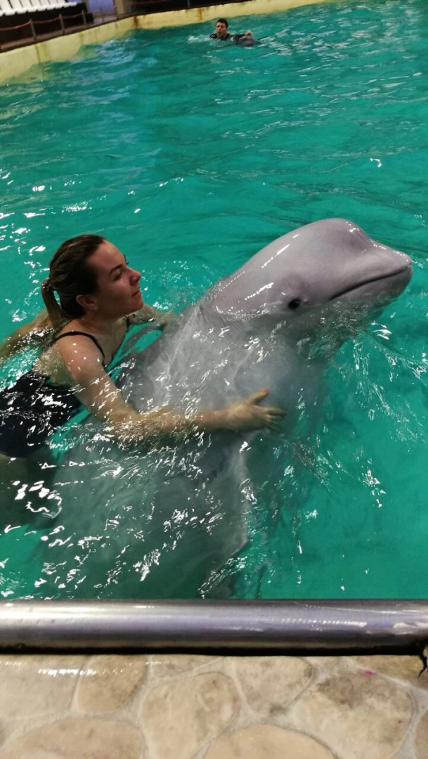 К слову, я НИКОГДА не питала особой любви к большим рыбам. Дельфины меня привлекали только в море издалека. Моей первой реакцией были слезы, мне было страшно. Ну почему он решил, что я буду счастлива от такого подарка?