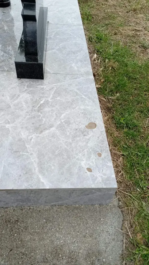 Прошло 2 года. Стояла суровая зима. Мы, как всегда по весне приехали на уборку памятника. И что же увидели? Остатки снега сошли вместе с кусочками плитки! Я просто до неё дотронулась, а она раскрошилась, как мел! Ничего не понятно! Ведь она как-то продержалась 2 года!