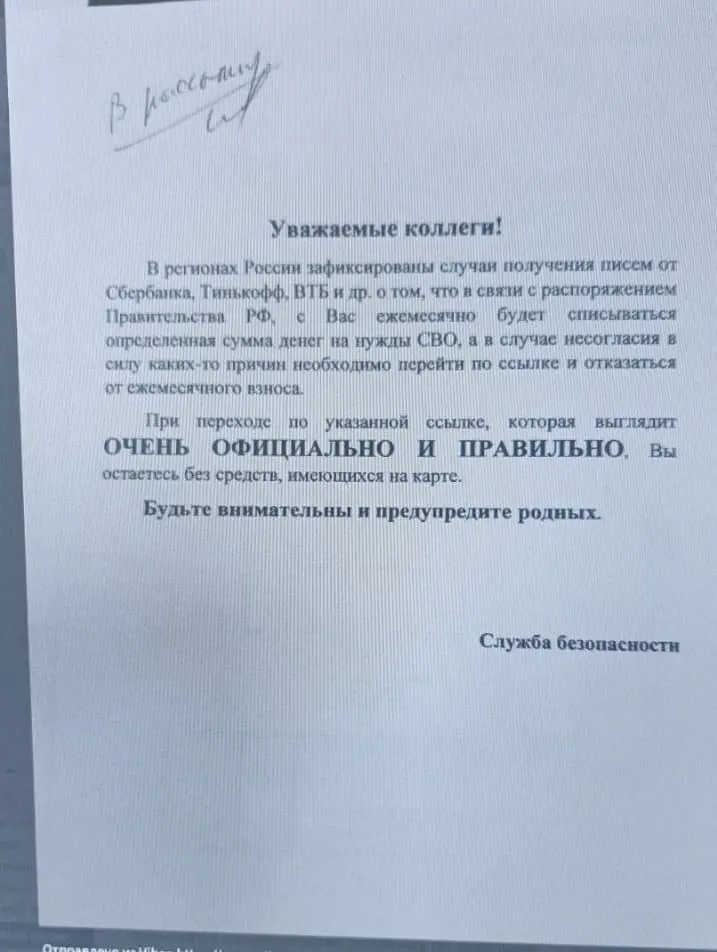 Указом президента РФ принято решение о сборе налоговых пошлин для развития СВО со всех граждан. После получения СМС, с вас автоматически будет списываться сумма налога. Если вы не согласны принимать участие в поддержке СВО, перейдите по ссылке и нажмите " отказаться "