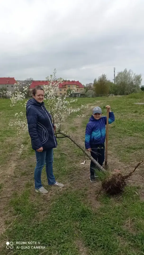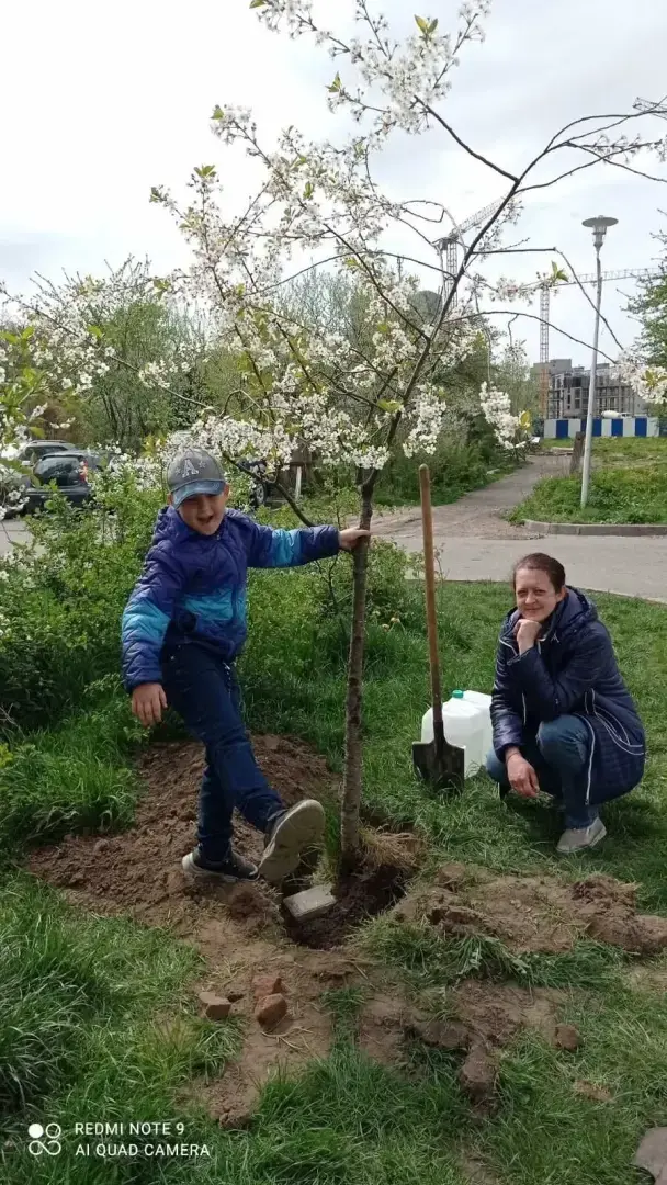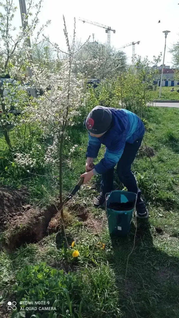 В жару каждый день носили баклашки с водой для полива, ухаживали за ними, но часть деревьев не прижилась, к сожалению.