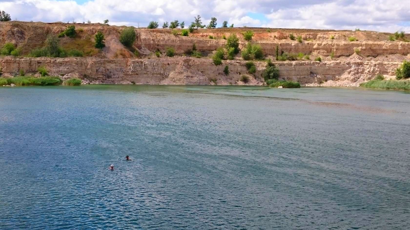 Когда-то, ещё в советское время, здесь добывали щебёнку. Размеры добычи были огромными, и со временем карьер сильно разросся. А потом он был затоплен грунтовыми водами, и его забросили. Но самое интересное, что вода в этом забое оказалась чуть солоноватой на вкус. Всего во Фроловском районе затопленными оказались 4 карьера, но солёная вода только в этом. Все удивляются такому факту.