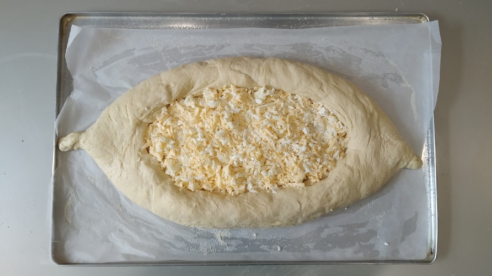 Главное не забыть, и делать хачапури сразу на противне, который обязательно нужно смазать маслом и подстелить бумагу для выпечки или пергамент