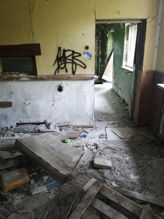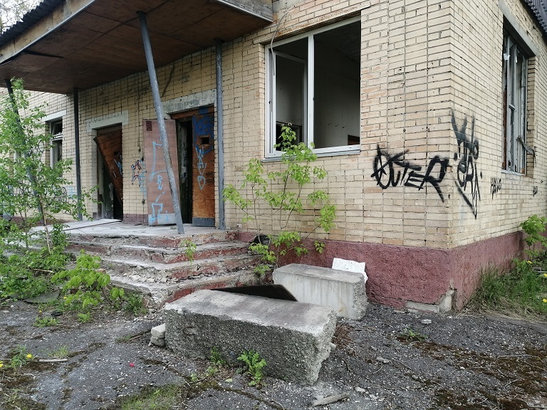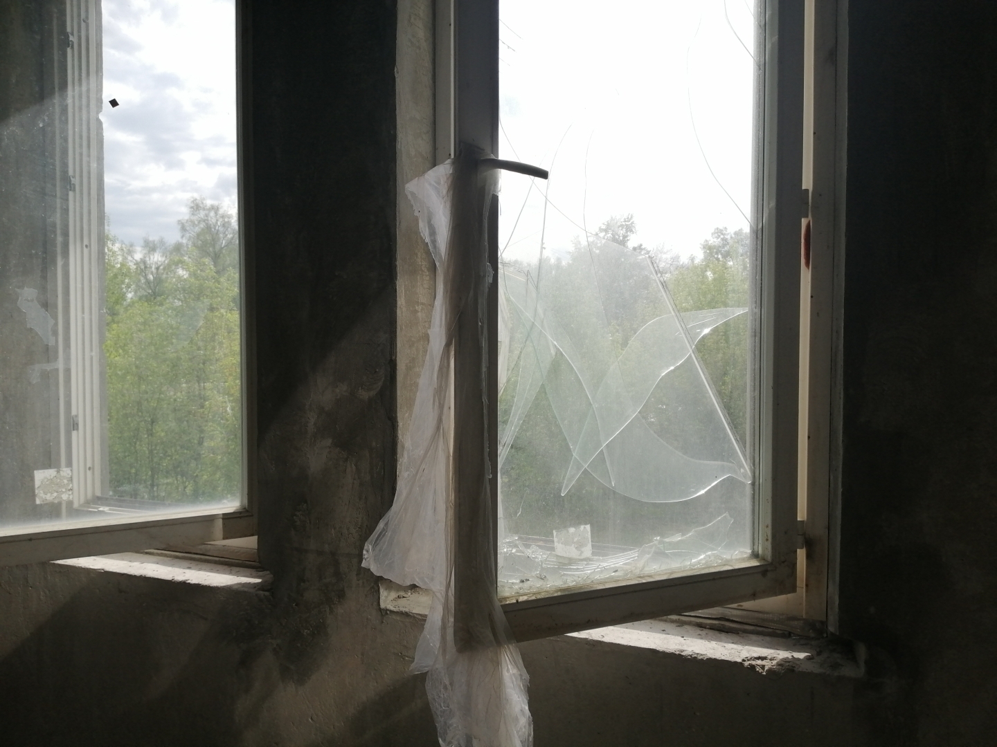 Однако, стеклопакеты сперли. То, что не смогли размонтировать – разбили вандалы. Двери мне найти не удалось ни одной. Но видно, что двери там были. Их оказалось проще снять, чем стеклопакеты.