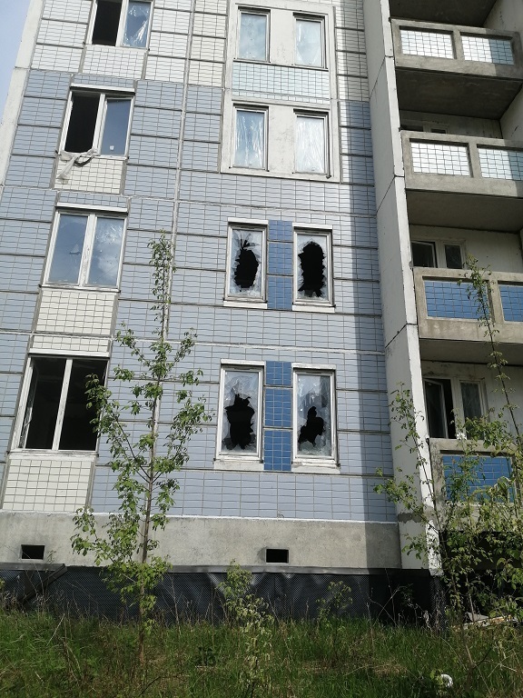 Пришлось ползти бабушке через разбитые окна и высаженные двери, в пыли, в разбитом стекле, в каких-то комуфляжных сетках…