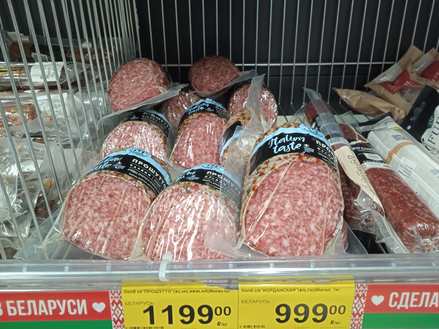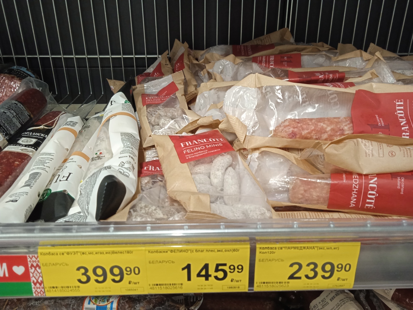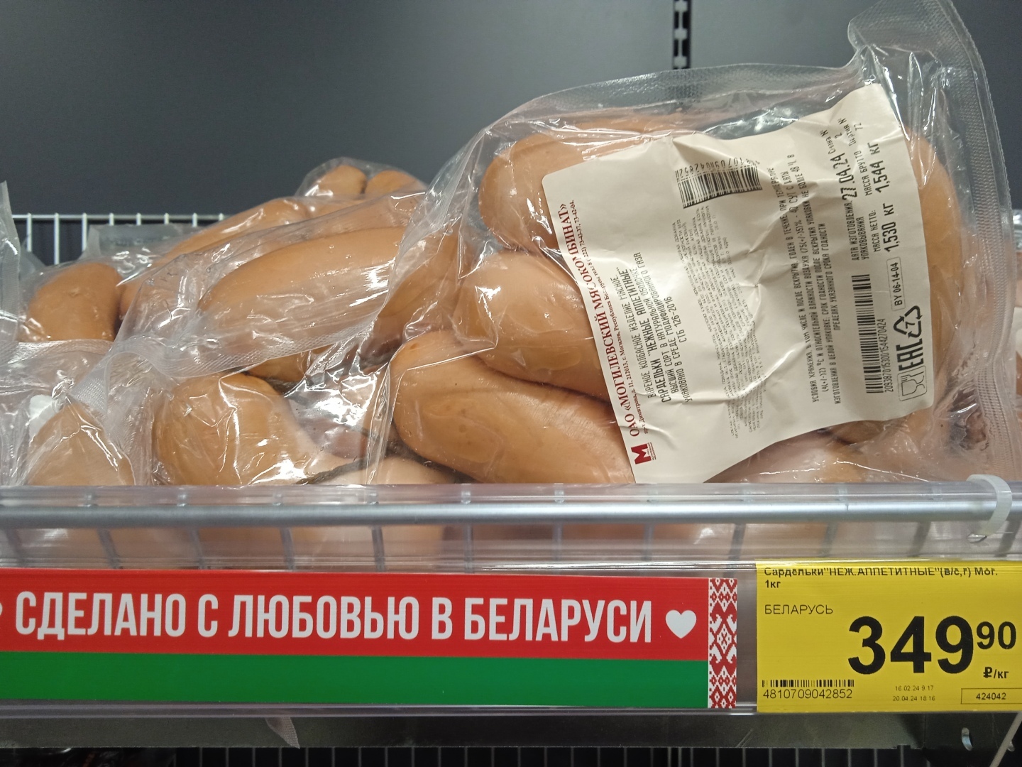 А вот сардельки производства Белоруссии по цене 350 руб. за кг без всяких акций и скидок!