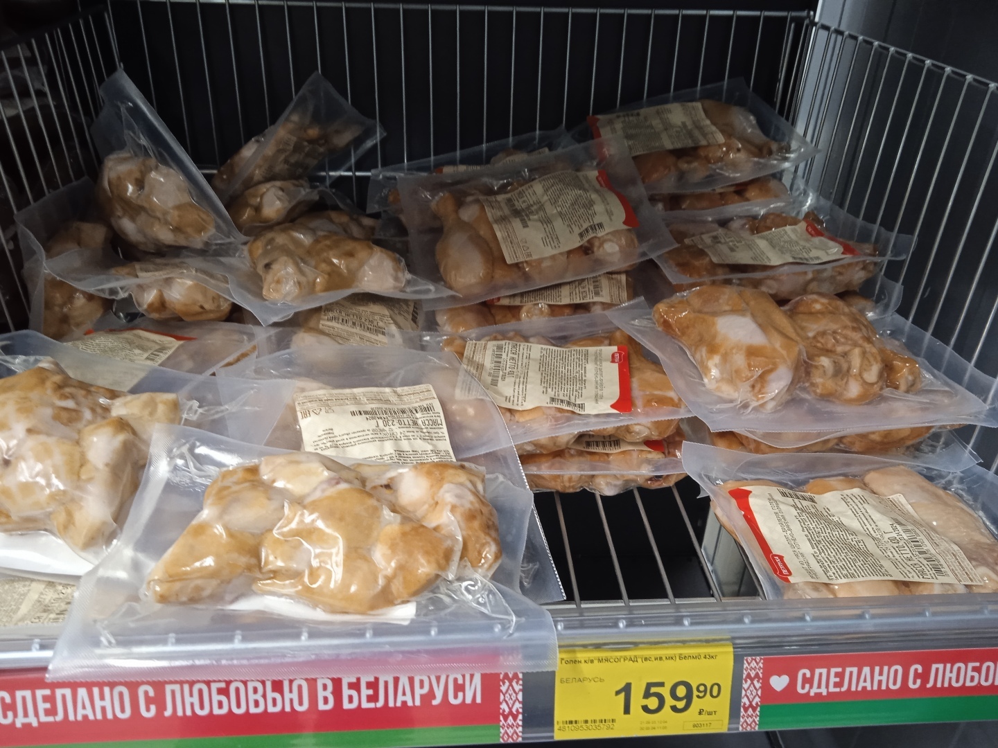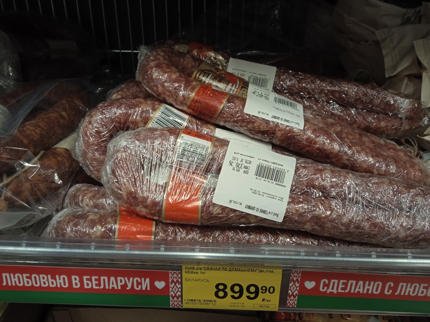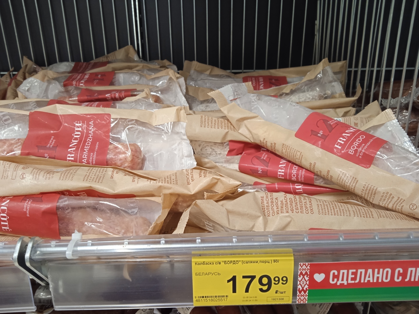 А вот сардельки производства Белоруссии по цене 350 руб. за кг без всяких акций и скидок!