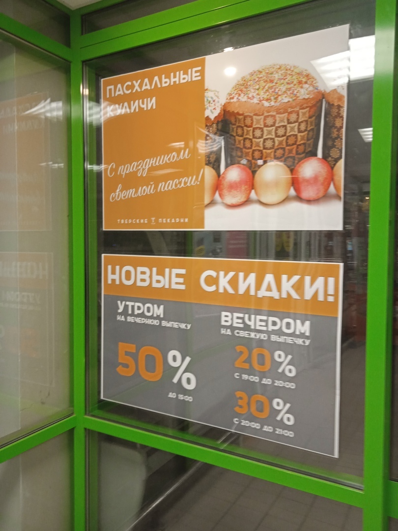 Также в кулинарии имеются и другие акции. Например, вчерашняя выпечка до 15:00 продаётся так же со скидкой – за полцены!