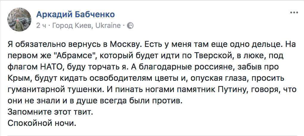 Аркадия Бабченко там тоже не обнаружили, видимо дело в Москве отменилось.
