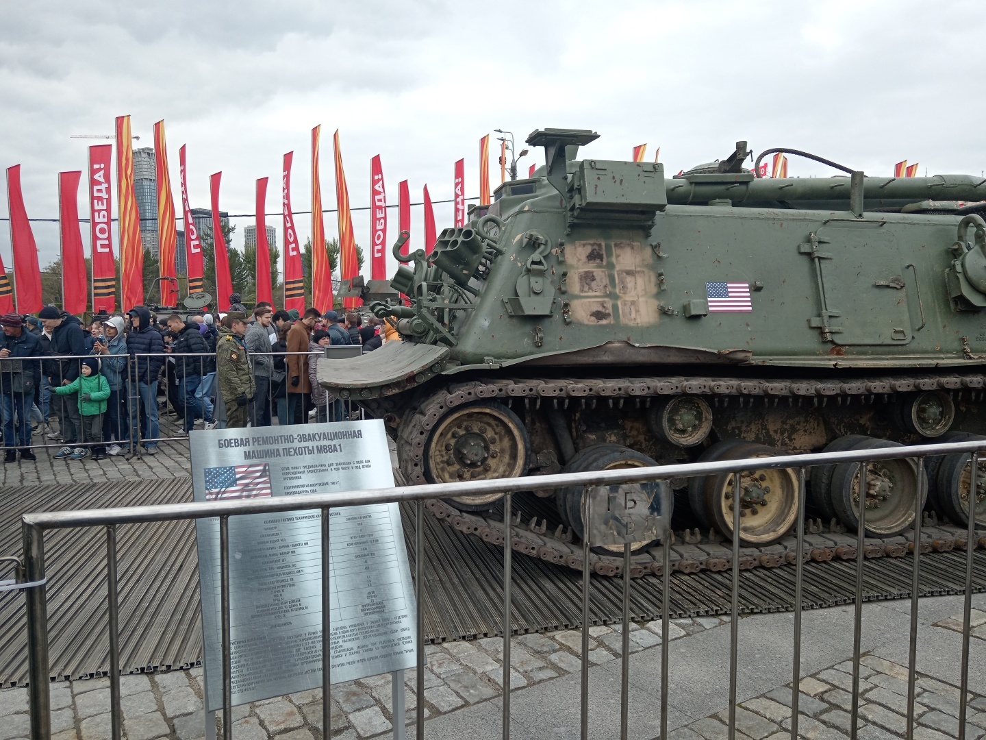 После небольшое отступления все же хочу перейти к главному. В воскресение 12 мая я решил сходить на Поклонную Гору, где организовали выставку иностранной военной техники, захваченной в зоне СВО.