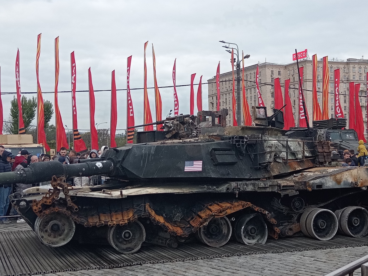 Недалеко стоял нашумевший американский танк «Абрамс», который оказался практически бесполезным на поле боя.