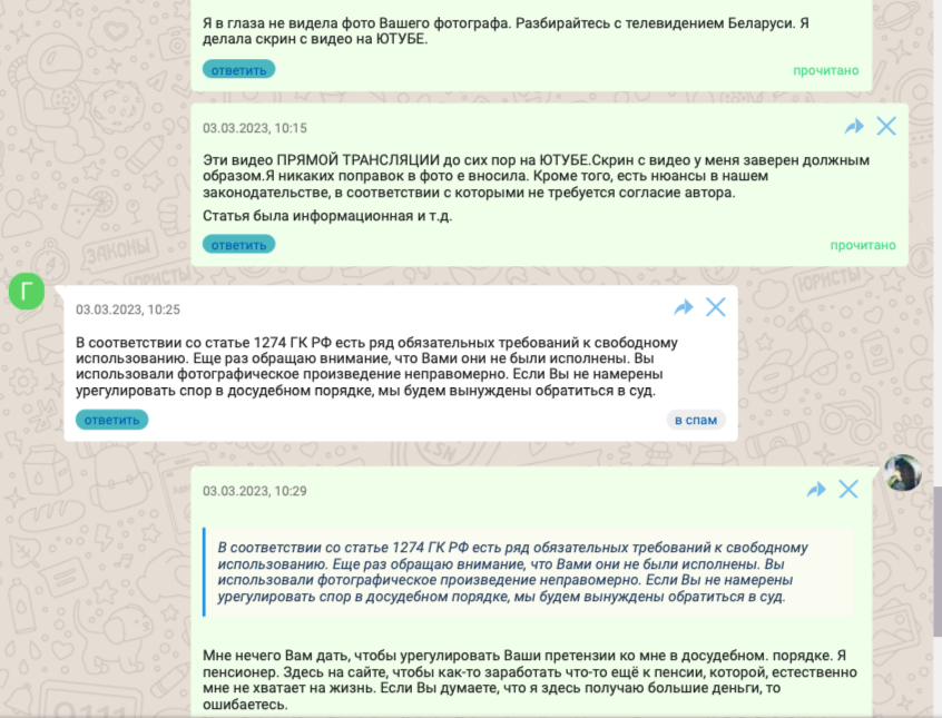 Помните год, когда во время пандемии в России отменили парад на 9 Мая, а в Белоруссии – нет. Мне так было обидно за ветеранов ВОВ. И я опубликовала статью про парад Победы в Беларуси. Ававтарку для статьи взяла из видео 1 канала Беларуси, что внизу прикрепила к комментарию. Фон аватарки – действительно являлся фотографией известного фотографа.. НО, я не делала никаких надписей на ней. Мне Юдаев писАл про эту ситуацию в личку. Потом, человек, представившейся в личке представителем, мне стал в личку писАть и говорить про деньги... чтобы дело не доводить до суда. Но, я ему скинула ссылку на это видео их ЮТУБА и сказала – разбирайтесь с ТВ Беларуси. Я использовала их материл, а ссылка на видео в статье имелась.