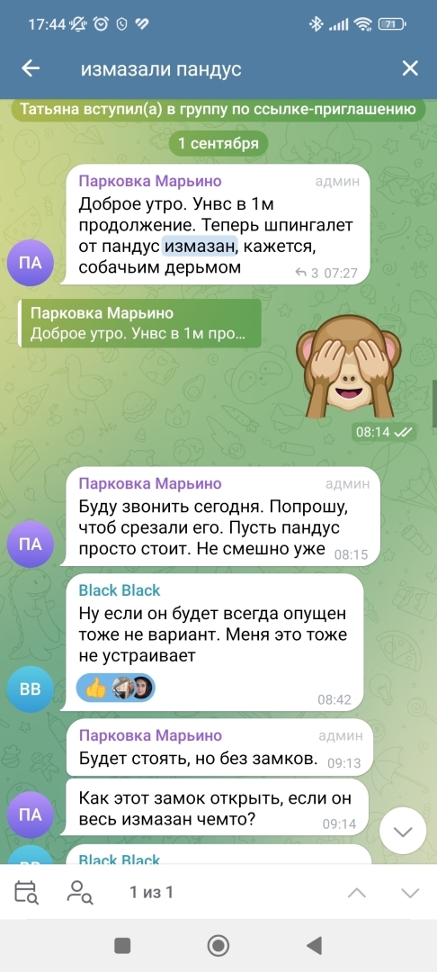 Одним прекрасным утром в чате я читаю, что замок пандуса кто-то измазал, простите, какашками...