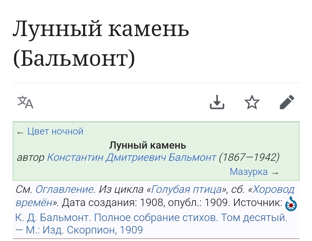 "Лунный камень" написал Константин Бальмонт. Это произведение русского поэта входит в собрание его сочинений. Вряд ли пенсионеры в молодости читали на английском языке. К тому же, это они мне сами и сказали)