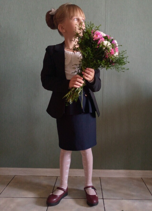 Когда мы попали к нашему педагогу по специальности, то он сказал, что она ещё маленькая, и зачислил ее в подготовительный класс. Алена действительно у меня очень миниатюрный ребенок, просто Дюймовочка. Но, несмотря на то что мы ходили на подготовку, учитель вел ее по первому классу. У нас изначально был учебник-хрестоматия, что говорит о непростом уровне.