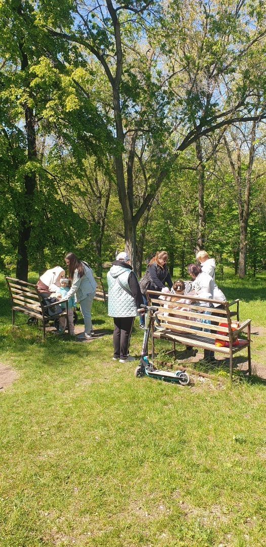 Мы вышли из дома, собрав с собой пикник и игрушки для детей. Парк было утопал в зелени, цветы расцвели, птицы щебетали, а солнечные лучи играли на листве деревьев. Мы прогуливались по дорожкам, наслаждаясь свежим воздухом и пением птиц.