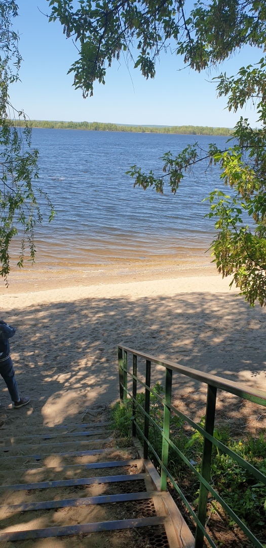 После пикника мы отправились дальше, ближе к реке. По пути мы увидели конную прогулку, лошади были очень красивые и грациозные. Мы кормили белок орешками, даже увидели нападение одной кошки на белочку, но та смогла выбраться из когтей и убежать. И вот мы подошли к высокой лестнице, которая ведёт к Волге. С каждой ступенькой вид открывается потрясающий. Люблю природу, мне всегда спокойно около воды, будь это река или озеро.. Шум реки, шелест листьев, свежий воздух, кайф. И вообще пейзаж очень красивый в любом месте на природе. Мы сделали много семейных снимков👭👩👧👦