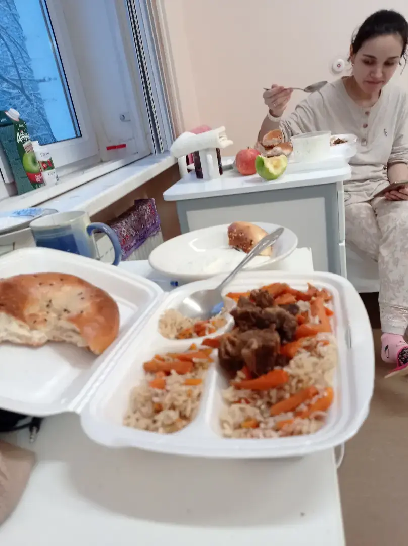 Вечером принёс покушать и мне тоже ( было очень приятно , что она попросила и подумала и о мне ) в больнице кормили не айс совсем ..