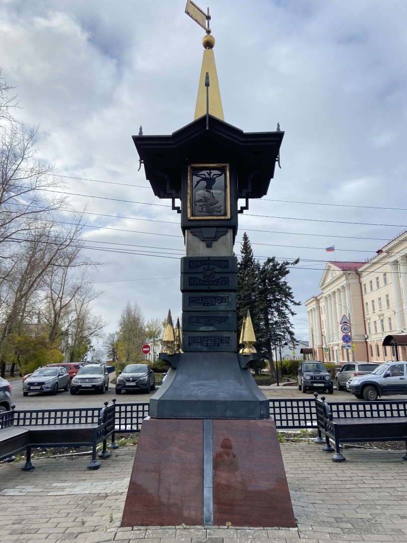 Затем я отправилась на набережную и пришла к «нулевой версте». Это указатель начала всех Архангельских дорог. Установлен со времен Петра 1, который так же основал город.