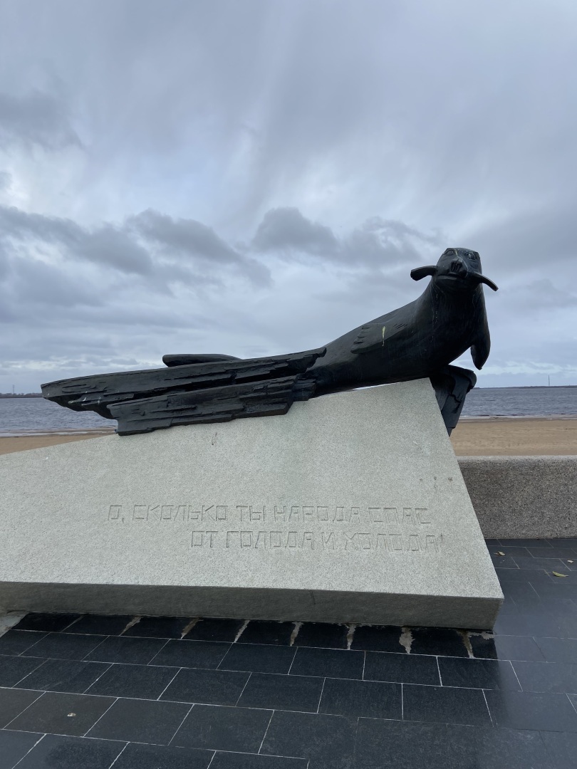 Предпоследней точкой была набережная Северной Двины! Здесь я увидела памятник Тюленю. Если правильно памятник «Тюленю — спасителю жителей Архангельска и блокадного Ленинграда»