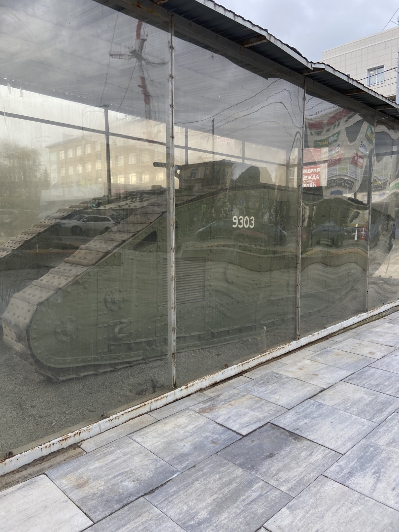 Когда я шла к танку, я не думала, что там будет реально танк. Ну, знаете, может фигура речи, или просто монумент какой. Но по факту там стоит настоящий танк, укрытый стеклянным куполом.