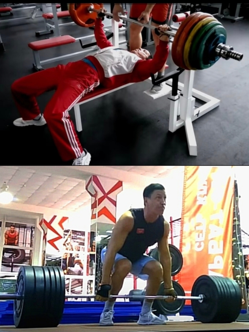 а в пауэрлифтинге жим лёжа и тяга штанги