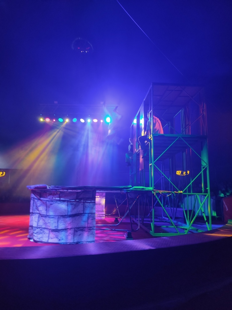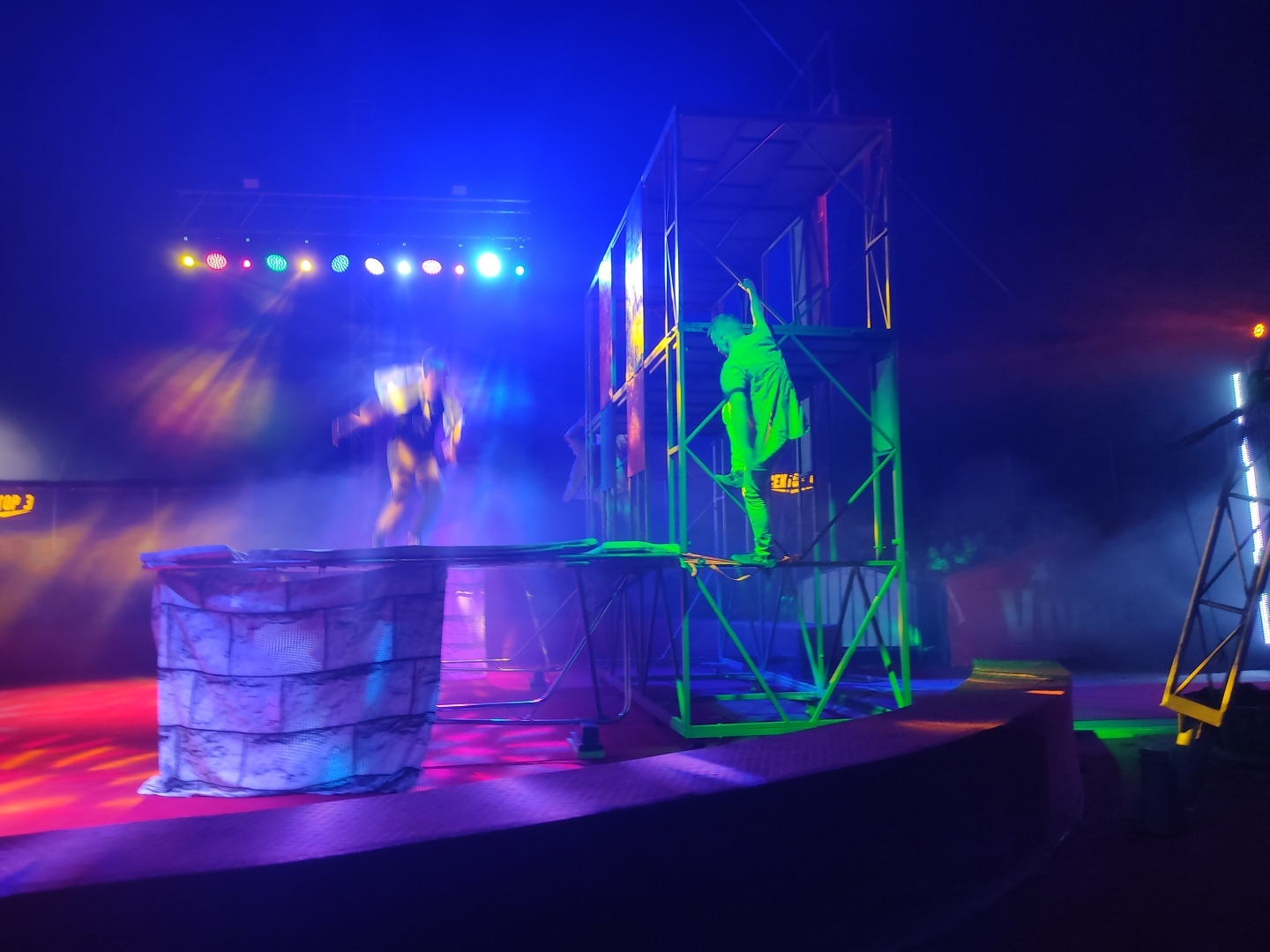Сидим мы такие, красивые и счастливые, и на сцену выкатывают непонятную конструкцию. Состоящую из строительных лесов и деревянных листов. Ага, сейчас будет что-то мега зрелищное. Ожидаем окончание номера и встречаем следующий.