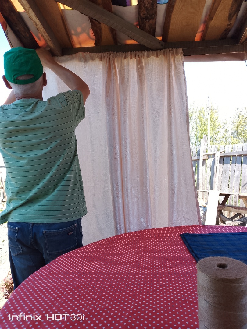 А ещё мы повесили занавески на нашу веранду! Вот что получилось!