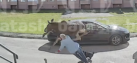 И это на территории города. Может испугался лось. Раз бежит не видя что впереди него творится.