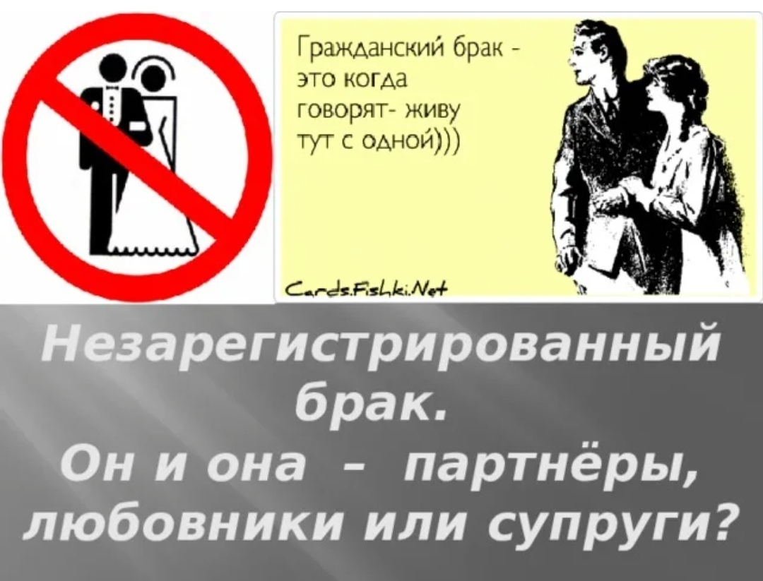 Многие называют сожительство - внебрачной связью или внебрачными отношениями, или незарегистрированным браком. Только сути это не меняет. В последнее время очень многие отношения между мужчиной и женщиной основываются либо на нерегулярных встречах для удовлетворения своих личностных, материальных и чаще сексуальных потребностей, либо на сожительстве. Такие отношения не основаны на обязательствах перед друг другом, поэтому их часто и выбирают люди безответственные. Вы можете со мной здесь не согласиться, но опыт работы в социальной сфере, показывает что именно безответственность основная причина сожительства, никто ничего никому не должен, и дети в таких отношениях находятся в уязвимом положении, как заложники ситуации.