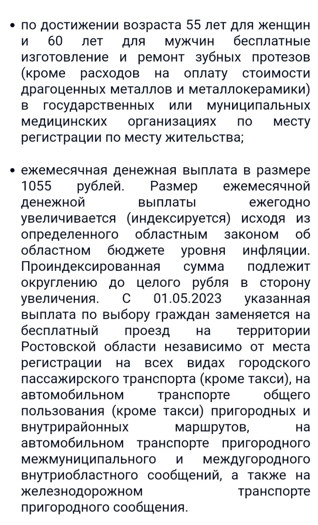 Положена ежемесячная денежная выплата в размере 1055 рублей, но смотрите свои льготы на Госуслугах.