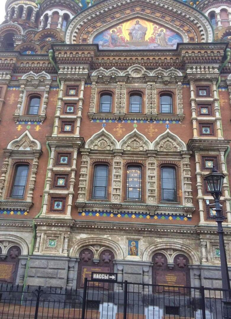 Если идти вдоль канала Грибоедова, то можно выйти к уникальному архитектурному творению, овеянному множеством легенд. Это Спас на Крови — один из самых известных храмов в России. То, что вокруг него существует ореол таинственности и необычности, мы ощутили на себе. В тот день с самого утра было пасмурно (это видно на всех фото и видео), даже капли дождя несколько раз срывались с неба. Но как только мы вышли к храму, тучи сразу же куда-то исчезли и выглянуло солнце. Просто мистика какая-то!
