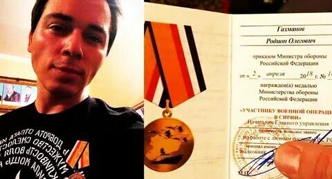 В 2018 году Родион Газманов дав один концерт в Сирии перед нашими военнослужащими получил боевую медаль "Участнику военной операции в Сирии". Этой наградой сына Олега Газманова, который пробыл в Сирии несколько часов уровняли с простыми солдатами и офицерами, которые проливали свою кровь на сирийской земле. Ещё один певец Юркисс..