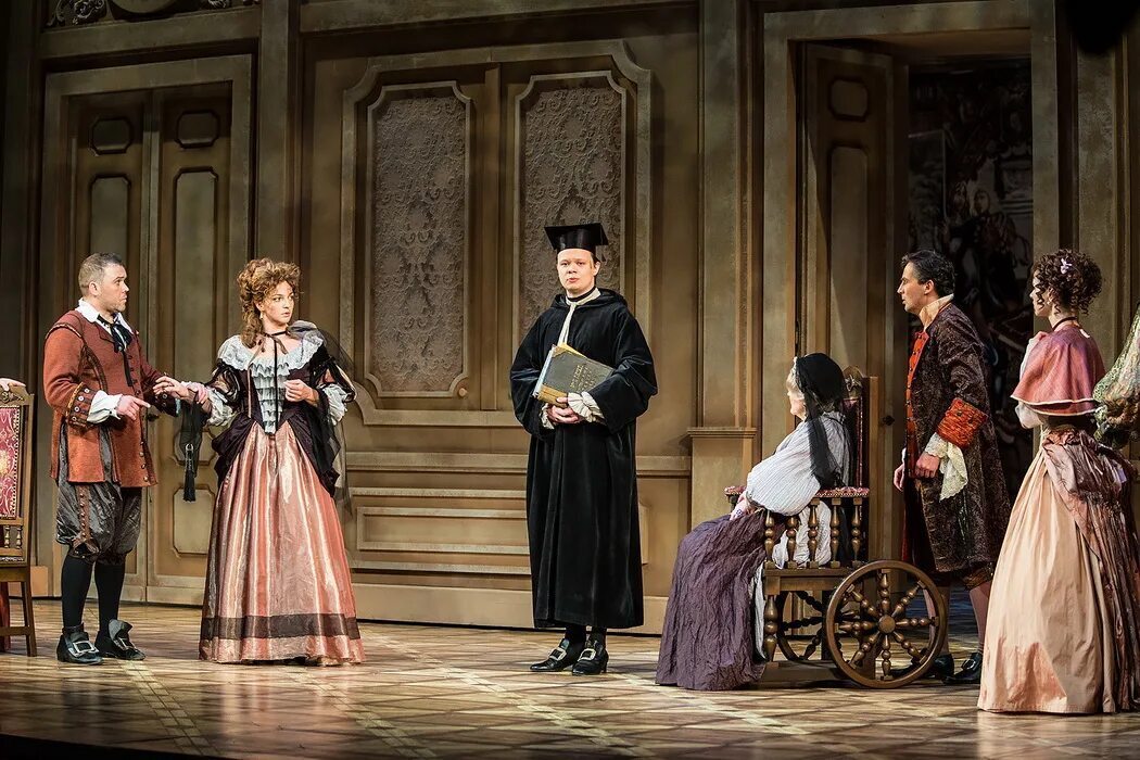 «Тартюф» (или «Обманщик») - одна из известнейших пьес Мольера. По сюжету, притворившись праведником, мошенник Тартюф втирается в доверие богатого дворянина Оргона. Вскоре Тартюф начинает жить в доме Оргона, чем недовольны домочадцы, ведь они видят истинное лицо святоши. Друзья и родственники пытаются открыть Оргону глаза на ложь и лицемерие "праведника", но Тартюф умело заговаривает своей жертве зубы, вследствие чего Оргон переписывает всё своё имущество на Тартюфа. Только когда "праведник" начал выгонять бывшего друга и его семью из дома, Оргон осознал, что близкие были правы в оценке личности святоши. К счастью, всё оканчивается благополучно: в последний момент указом короля Тартюфа арестовывают за мошенничество.
