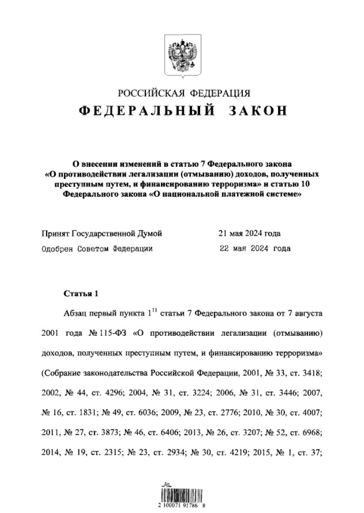 Максимальный лимит до 100 тысяч рублей на переводы. Владимир Путин подписал правительственный закон снижающий риски отмывания преступных доходов