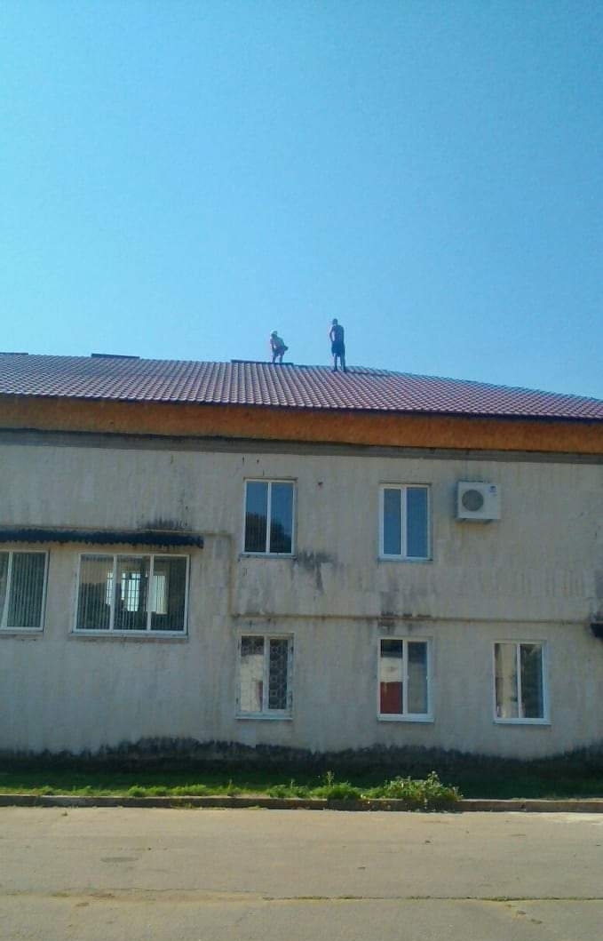 Судя по фото инструктажи по ОТ проводились формально и не до всех дошли, да и средств для работы на высоте не видно. Конструкция непонятно почему такую выбрали - при сильном ветре эта крыша может легко улететь.