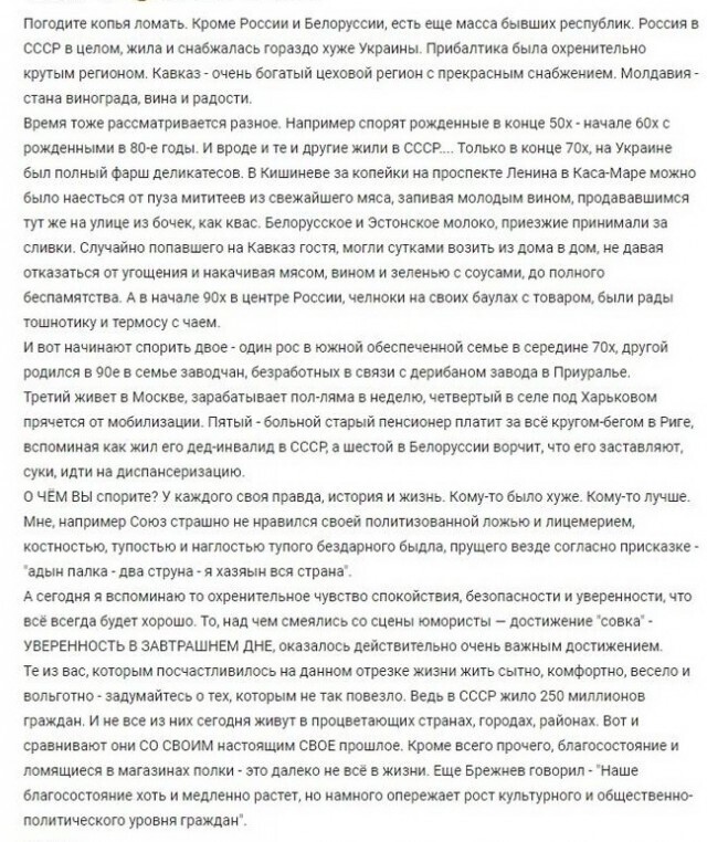 Самое лучшее объяснение, почему одни ругают,а другие с теплотой вспоминают СССР.