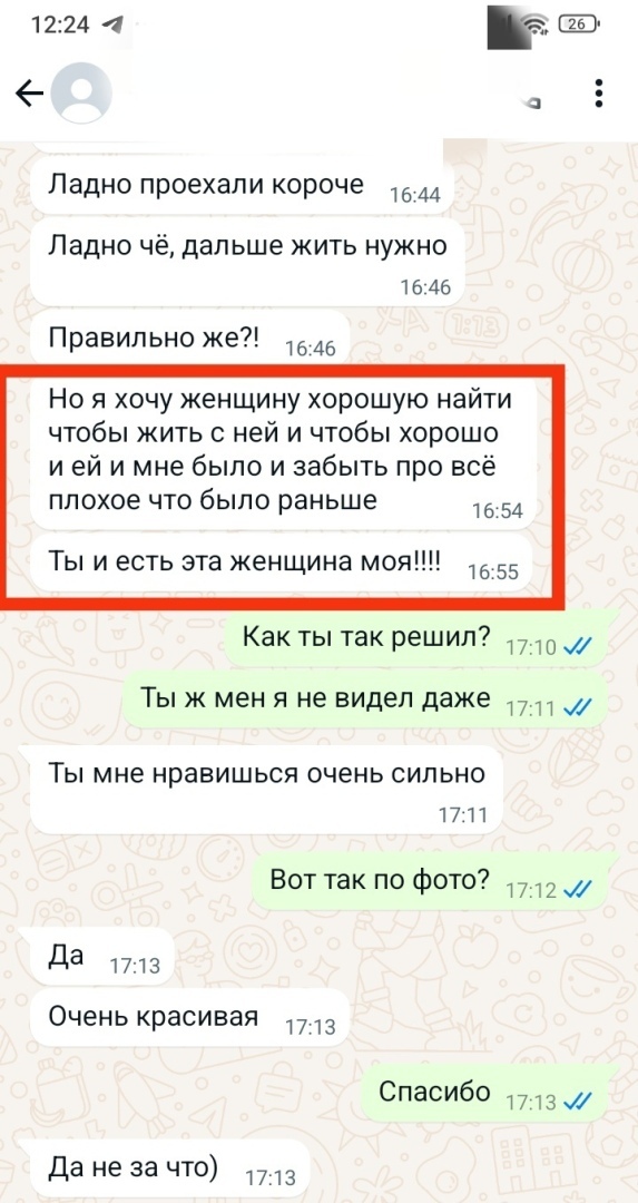 Так вот, тот написавший парень был моложе меня и вполне симпатичен и я искренне не понимала, что ему от меня надо) Но собеседник был настойчив и общение завязалось... Сначала на самом сайте знакомств, а чуть позже мы по обоюдному согласию перешли на переписку в мессенджере. Тут всё и началось.....