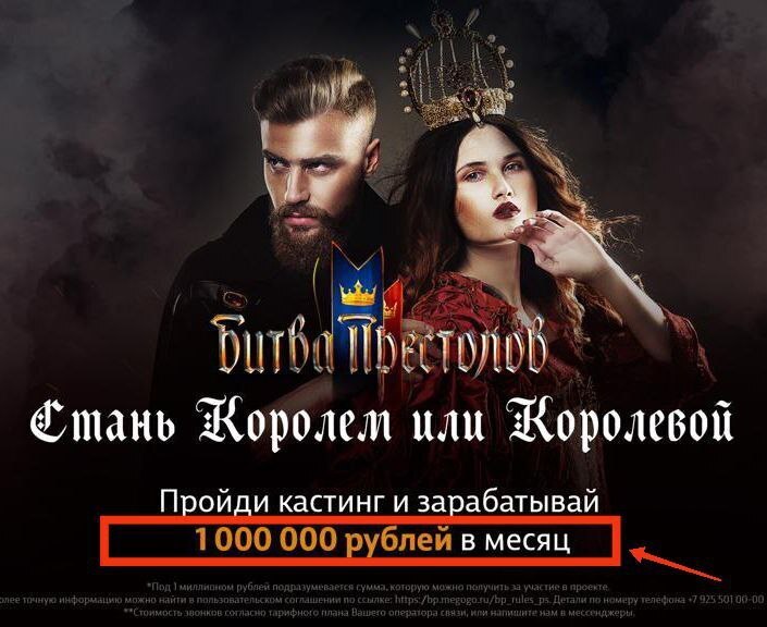 И вот это условие. "Битва престолов" – это реалити-шоу, в котором на месяц сами участники выбирают одного короля и одну королеву. Так вот, если меня выберут участники королевой, тогда моя зарплата и составит миллион рублей. Но все хотят этот миллион, в этом и суть шоу. Все хотят на место королевы и короля! И никто никому не уступит в битве за деньгами.