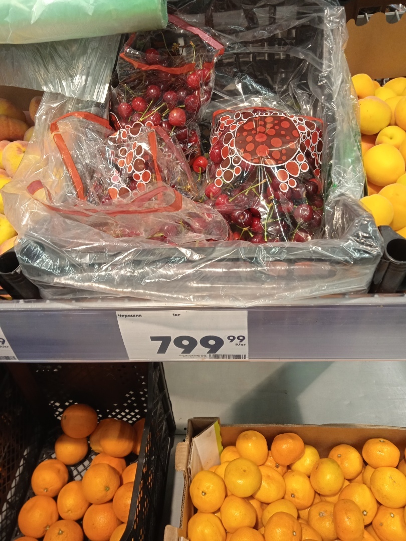 У нас черешня стоит 200-300 рублей, и то я считаю это дорого. Но её я не покупаю, своя растет в огороде 😊