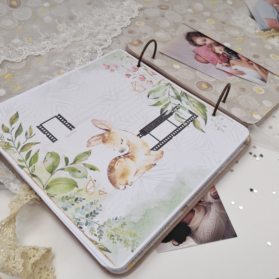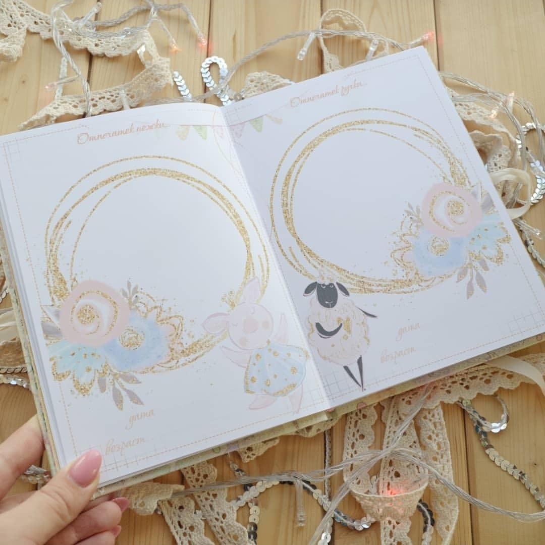 Кстати, предпосылки к скрапбукингу у меня были ещё в первом декрете, тогда я делала альбом старшему сыну. Материалов тогда толком не было, поэтому в дело шло всё 🙈 от детских обоев и открыток, до пуговиц и кусочков ткани.