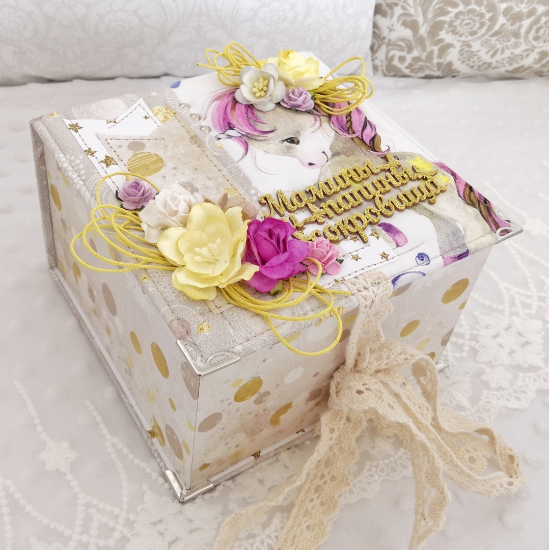 Несколько лет я вообще работала только в детской тематике: папки, альбомы, блокноты, шкатулки, даже рамки для фотографий были.