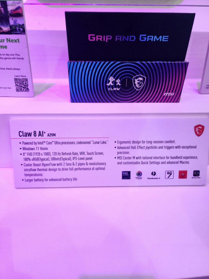 Портативный компьютер MSI Claw 8 AI+ «A2VM» стал больше, мощнее и оснащен процессором Intel Lunar Lake
