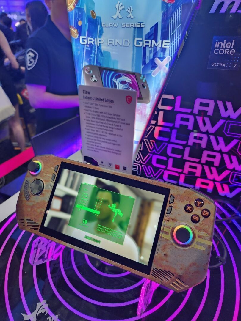 В дополнение к новому Claw 8 компания MSI также продемонстрировала оригинальный игровой портативный компьютер Claw с процессорами Intel Meteor Lake «Core Ultra» в версии Fallout, который был замечен под управлением Fallout 4. Новый вариант уже поступил в продажу.