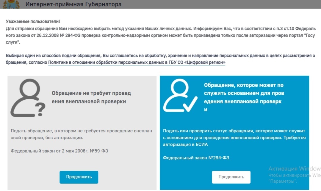 Но нельзя отвечать по 59-ФЗ, если есть синяя подпись или через госуслуги, то меняются права и допускается внеплановая проверка, или любое активное движение, а рассмотрение будет проводится по 294-ФЗ.