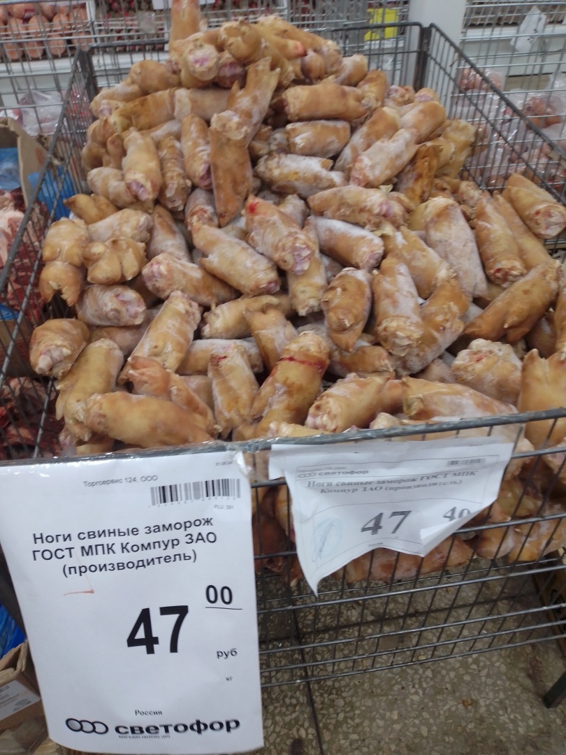 Всем доброго дня. Сегодня ходила в Светофор, довольно большой он у нас, еще и расширились. Я хожу что нибудь взять для дачи. Удобрения, лейки ну и все такое . Можно взять довольно дешево. На продукты как то не особо смотрю. Хотя что то можно найти дешевле чем в магазинах. Но вот что касается холодного отдела, мне как то не по себе. Навалено действительно как свиньям. Грязь, бардак. Я понимаю что люди ищут что то дешевле. Да, можно и фрукты взять, овощи, что то для дачи. И кстати сегодня выбросили свеженькие тушки свинины.