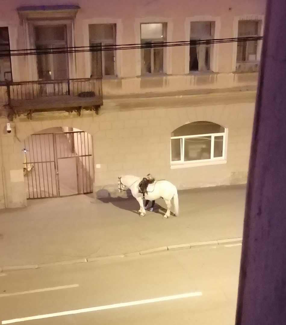 Неизвестно, сколько бы она изгалялась тут, но пришёл "моё детство белый конь"... Может, лошадь. Из окна не видно. Док-во приложила 🥰