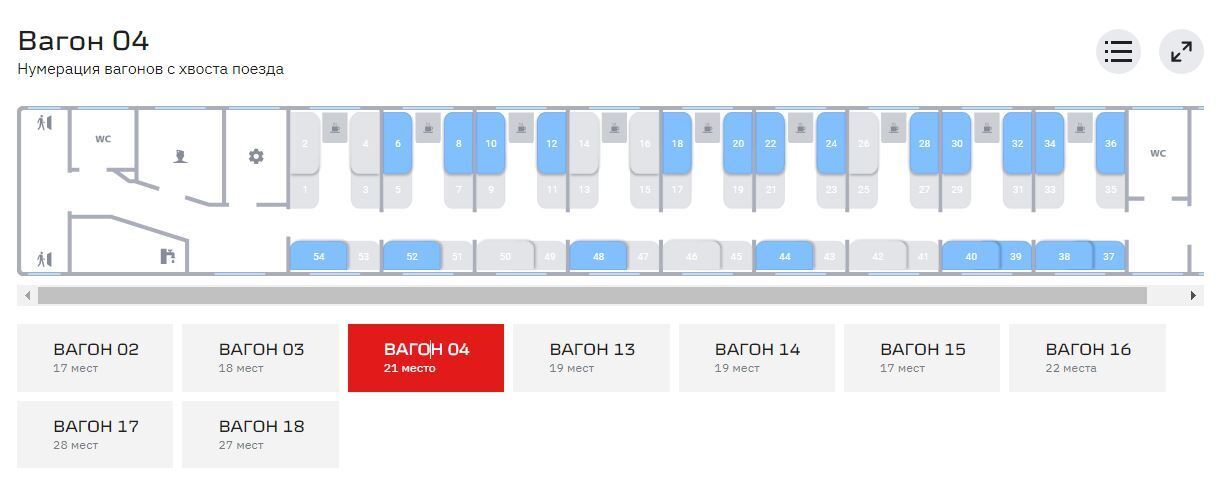 Покупка прошла быстро и без лишних хлопот, что значительно облегчило планирование нашего путешествия. И мы были уверены в том, что наше путешествие начнется с комфорта и безопасности, благодаря заранее приобретенным билетам. А вот как выглядит вагон с выбором мест на сайте РЖД.