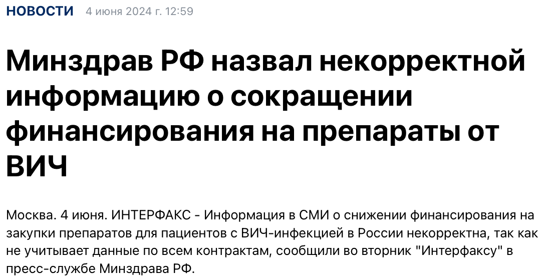 Минздрав России похоже опровергает информацию о нехватке препаратов от ВИЧ