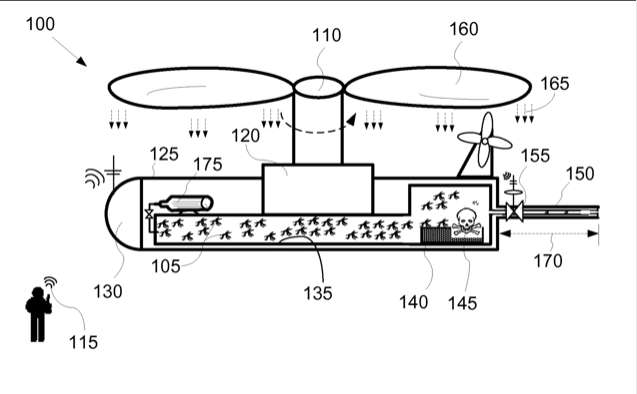 "Правительства искали оружие, которое можно было бы использовать для доставки химикатов, вирусных и бактериологических веществ для летального и несмертельного применения скопившимся массам людей. Нелетальное использование обычно включает операции по поддержанию мира для использования в действиях, не считающихся «военными операциями», а также против террористов или государственных субъектов в войне. В этом смысле такое оружие может использоваться для борьбы как с вооруженным противником, так и с гражданским населением. Не все виды использования такого оружия запрещены договором. Настоящее изобретение способно доставлять летальные и несмертельные токсины, включая любой агент, который может переносить и вводить комар."